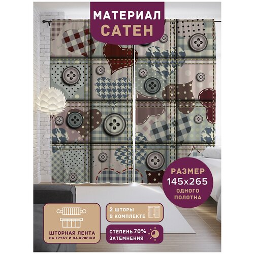 Шторы, фотошторы JoyArty Ретро с пуговицами из ткани сатен, 2 полотна шириной по 145 см, высота 265 см, шторная лента и крючки, степень затемнения 70