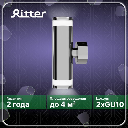 Светильник настеннопотолочный накладной Arton, цилиндр, 55х175х85мм, 2хGU10, алюминийстекло, хром, спот, бра, на стену, на потолок, Ritter, 59959 3