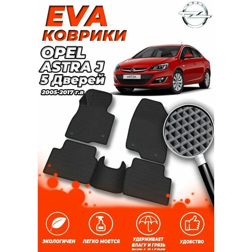 Комплект Автомобильных Ковриков EVA ЕВА ЭВА в салон Opel Astra J Опель Астра ) 5 Дверей 20052017 Черный Ромб Черная окантовка