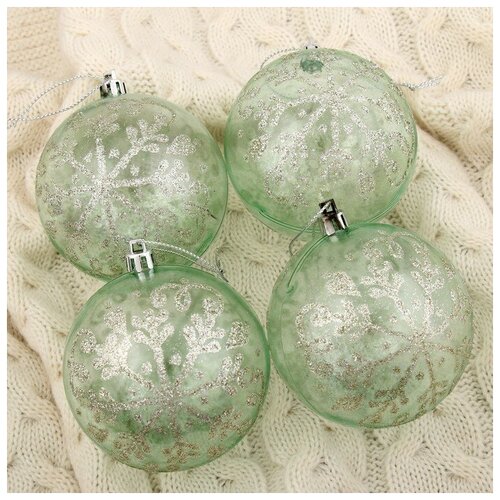 Набор шаров пластик d8 см, 4 шт Воздушные снежинки зелный