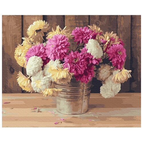 Картина по номерам на дереве 40х50 дачный букет 28 цветов)