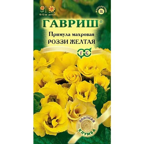 Одно из самых раннецветущих травянистых многолетних растений, относится к семейству Первоцветные. Образует компактный и очень выровненный кустик высотой 1012 см. Растение с крупными до 4 см), махровыми цветкамирозочками желтого оттенка и цельными прикорневыми зелеными листьями. Примула морозоустойчива и теневынослива. Легко переносит пересадку даже во время цветения. Семена высевают в открытый грунт осенью или весной после стратификации во влажном песке при низкой положительной температуре, в течение 34 недель. При температуре почвы 10С всходы появляются через 25 дней. На постоянное место высаживают весной или осенью второго года. Высаживать примулы надо с таким расчетом, чтобы посадки были сомкнутыми, а между розетками листьев не было открытого пространства. Молодые растения зацветают на второй год. Используют для посадки в бордюры, рабатки и каменные горки, особенно в тени, а также для зимней выгонки. Растение, пересаженное осенью в горшок, зацветает в комнатных условиях в мартеапреле. Семена Примула махровая Роззи желтая, 3шт, Гавриш, Элитная клумба