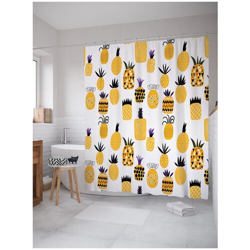Штора для ванной, занавеска в ванную комнату JoyArty Ароматный ананас из сатена, 180х200 см с крючками