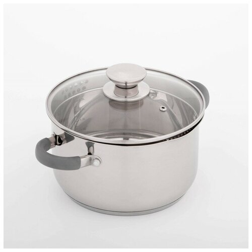Кастрюля Magistro Tefida, 3,5 л, 2010 см, крышкадуршлаг, носик для слива, капсульное дно, силиконовые ручки, стеклянная крышка
