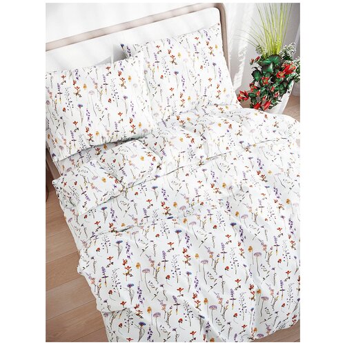 Постельное белье Сказка Флора 2спальный наволочки 50х70 2шт Простынь на резинке 160х200 см Пододеяльник 175х215 см