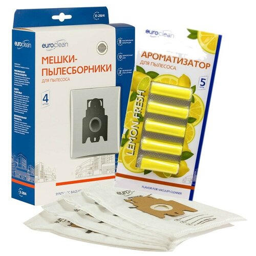 Мешкипылесборники Euroclean синтетические 4 шт и ароматизатор Лимон для пылесоса HOOVER TS1823 SENSORY