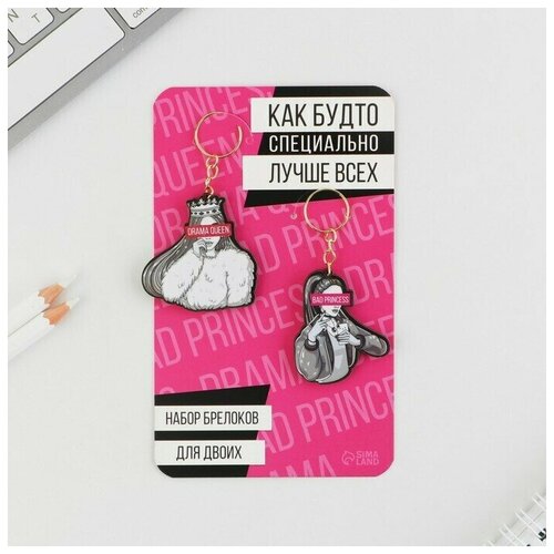 Парные брелоки на ключи для двоих в форме символа Нового года Зайчиков и Котиков идеальный способ порадовать себя и своих близких. Парные брелоки для влюбленных являются износостойкими и подходят для ключей автомобиля, на сумку и рюкзак. Качественная печать позволит выбрать парные брелоки для друзей на любой вкус. Парные брелоки паре для ключей символичный подарок для праздника, который можно подарить как подарок влюбленным на 14 Февраля, 23 Февраля, Новый год или подарок просто так. Парные брелоки для подруг приятный подарок, которые можно использовать как аксессуар, бижутерия. Парные кулоны для девушек популярный подарок для лучших подруг и детей на День рождения и 8 Марта. Парные подвески для влюбленных пар это не просто украшение, это подтверждение, что пара ценит и любит друг друга.34;Bad princess Drama queen34;, 5,2 х 7,2 см