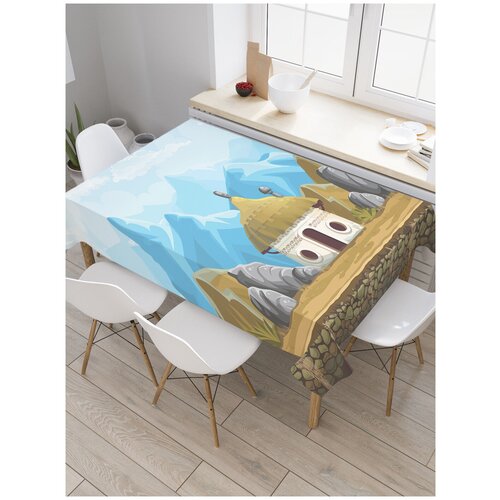 Скатерть прямоугольная JoyArty Домик в горах из сатена, 120x145 см