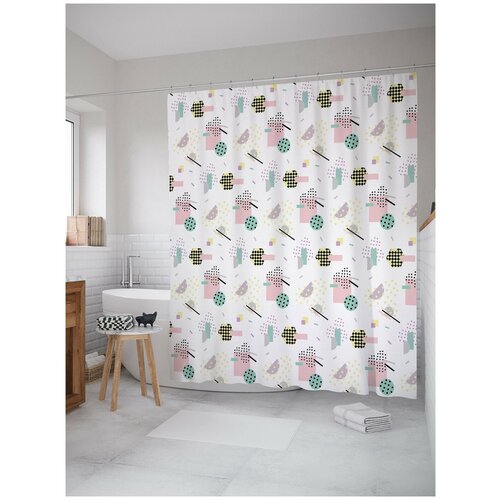Штора занавеска) для ванной JoyArty Воздушные леденцы из сатена, 180х200 см с крючками