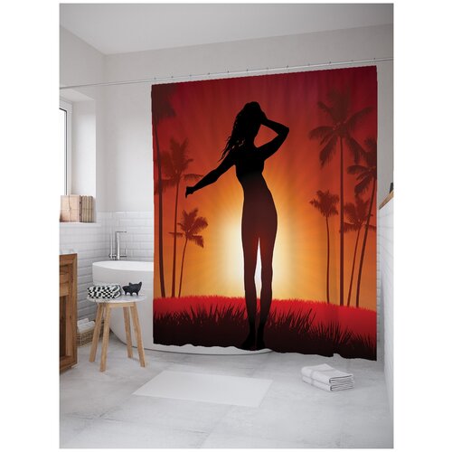 Штора занавеска) для ванной JoyArty Танцы под солнцем из сатена, 180х200 см с крючками