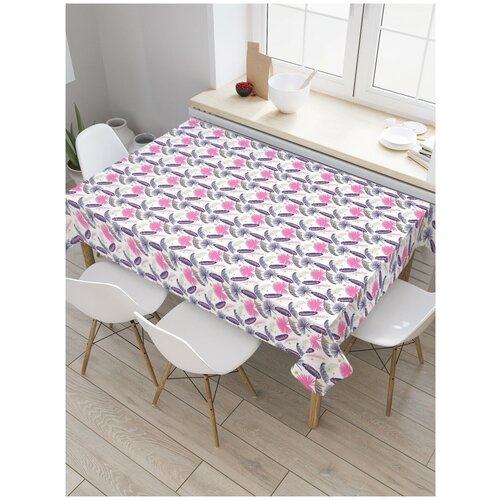 Скатерть прямоугольная JoyArty на кухонный стол Перьевые тропические листья из оксфорда, 180x145 см