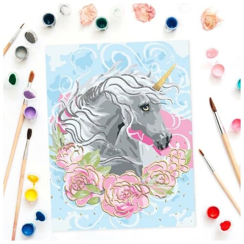 Картина по номерам без подрамника Единорог с фольгой, 30х40 см