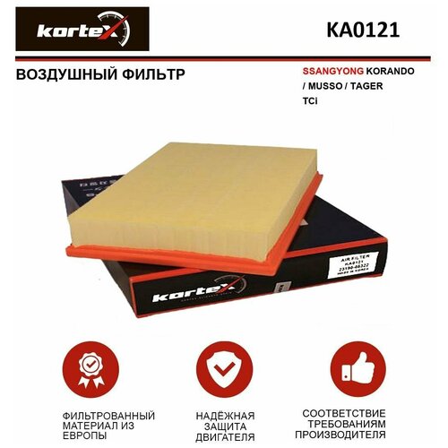 Фильтр воздушный KORTEX производится на современных автоматизированных линиях производства с применением последних технологий, что гарантирует минимальное значение допусков, полное соответствие необходимым размерам и беспроблемную установку. Фильтр воздушный KORTEX соответствует строгим требованиям качества производителей, служит полноценной заменой штатного воздушного фильтра. Для того что бы узнать подойдет ли запчасть к конкретно вашему автомобилю, вам необходимо узнать OEM номер заводской детали вашего автомобиля и сверить ее с OEM номером указанным в описании данной карточки товара. Подходит для автомобилей: SSANGYONG KORANDO MUSSO TAGER TCi ОЕМ: 2319005321, 2319005322, AP194, EAF00060M, KA0121, LX2047