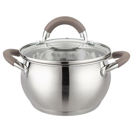 Кастрюля AGNESS со стекл. Крышкой 1,9 Л. 16X9.5 СМ цвет: кофейный Бренд AGNESS представляет кастрюли из нержавеющей стали серии Apple. Нержавеющая сталь это наиболее прочный, устойчивый к деформациям материал. На такой посуде, практически никогда не появляются царапины и сколы.Также нержавеющая сталь это гигиеничный материал. На ее поверхности нет трещин, пор и неровностей, в которых обычно скапливаются бактерии.Изюминка этой серии это удобная форма и утолщенные стенки. Благодаря энергосберегающему капсульному дну блюда, приготовленные в такой кастрюле, дольше останутся горячими.Энергосберегающее капсульное дно обеспечивает быстрый и равномерный нагрев посуды. Многослойная структура капсульного дна позволяет накапливать тепло и быстро и равномерно распределять его по всей поверхности посуды, в результате блюда готовиться быстрее. Вы экономите электроэнергию и Ваше время. Подходит для всех видов плит, включая индукционные. Подходит для мытья в посудомоечной машине.Утолщенные стенки . Надежные клепанные ручки с силиконовыми вставками. Удобная стеклянная крышка с паровыпуском.Готовьте с удовольствием вместе с брендом AGNESS!