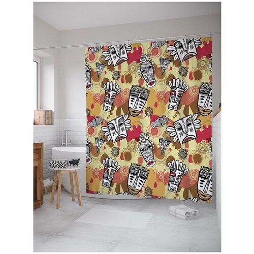 Штора занавеска) для ванной JoyArty Маски духов из сатена, 180х200 см с крючками