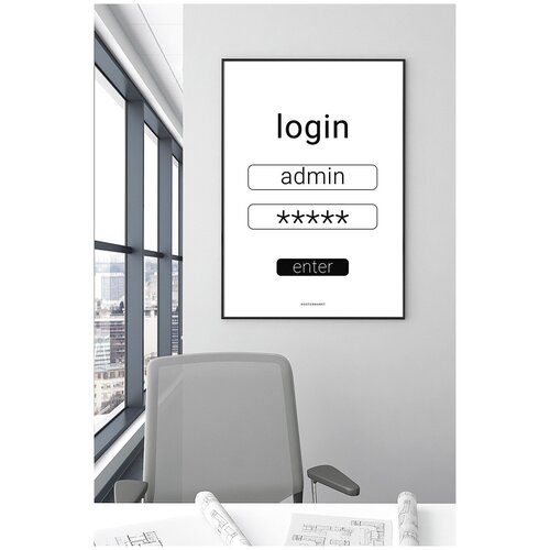 Постер для офиса черной рамке Postermarkt Login, 50х70 см