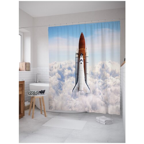 Штора занавеска) для ванной JoyArty Шаттл в облаках из сатена, 180х200 см с крючками