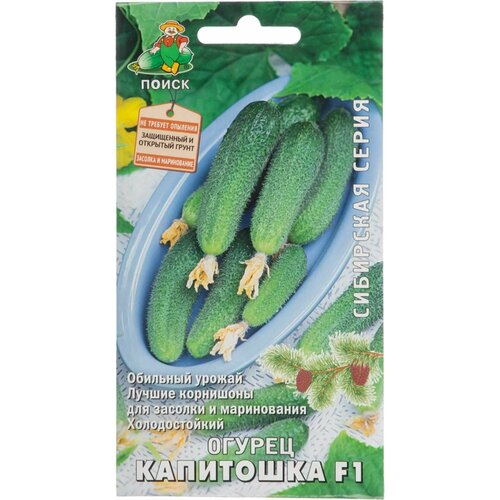 Семена поиск Огурец Капитошка F1 семена раннеспелого сорта корнишонов. Отличается формированием завязей пучками. Растение длиной до 250см нуждается в подвязке. Аккуратные плоды небольшого размера около 10см) имеют колючебугорчатую поверхность и отменные вкусовые характеристики. Ценность сорта заключается в раннем и дружном созревании плодов, хороших товарных свойствах. Плоды употребляют в пищу в сыром виде, консервируют или маринуют. Сорт достигает хороших показателей урожайности до 10кгм2), не требует особого ухода, подкормки и произрастает на любых почвах. Он дает обильный урожай и отличается холодостойкостью. Это лучшие корнишоны для засолки и маринования.