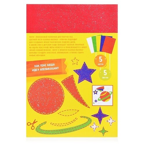 Фетр цветной для творчества КалякаМаляка с голографическими блестками, 5 листов А4, 5 цветов, в пакете с европодвесом