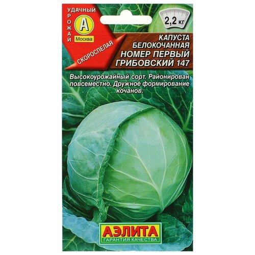 Артикул: 0774539. Материал: См. на упаковке, Вес: 4 гр., Посев на рассаду: Апрель Май, Размер упаковки: 8 x 15 x 0.1 см., Упаковка: Цветная, Сорт или гибрид: Сорт, Особенности выращивания: Открытый грунт, Сроки созревания: Ранний, Вегетационный период, дни: 105, Вид капусты: Белокачанная, Агрономический срок годности, лет: 5. Номер первый Грибовский 147 скороспелый сорт белокочанной капусты. Растение формирует округлые выравненные кочаны средней плотности с нежными хрустящими листьями. Период от всходов до урожая: 100110 дней. Масса кочана: 12 кг Урожайность: 67 кг2. Как сажать. Семена сеют на рассаду. Е помещают в грунт в возрасте 4550 дней, в фазе 56 настоящих листьев. .