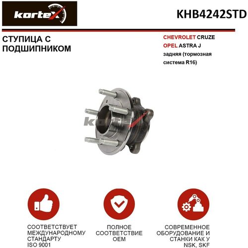 Ступица с подшипником Kortex для Chevrolet Cruze Opel Astra J зад.торм. сист. R16) OEM 13502873; 13577407; 9400193; 9400193K; KHB4242; KHB4242STD; VK