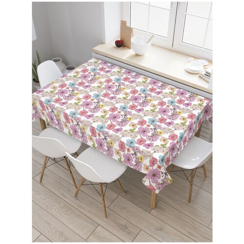 Скатерть прямоугольная JoyArty Разноцветная весна из сатена, 180x145 см