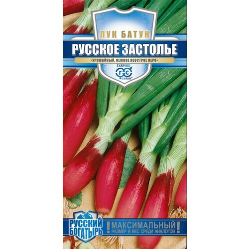 Гавриш Лук батун Русское застолье, на зелень 0,5 г Скороспелый продуктивный неприхотливый сорт. Быстро формирует утолщенную длинную цилиндрическую луковицу красного цвета с мощной розеткой сочной полуострой зелени. Зелень рекомендуется использовать в свежем виде в салатах, супах, для украшения закусок и замораживания. Вкусная и нежная луковица очень удобна для нарезки маленькими аккуратными кольцами. Посев семян непосредственно в открытый грунт производят в конце апреляначале мая, на глубину 1,01,5 см по схеме 45 х 1015 см. Сбор урожая начинают в конце июняначала июля, когда листья достигнут высоты 2030 см.