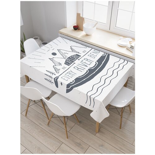 Скатерть прямоугольная JoyArty Экспедиция по реке на байдарке из сатена, 180x145 см