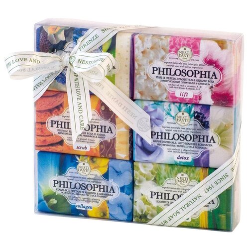 Нести Данте мыло набор Философия 150г 6 Набор косметического банного мыла Нести Данте 34;Философия34; Nesti Dante s. r. l. PHILOSOPHIA с нежнейшим ароматом цветущих герани, османтуса и вишни предназначен для деликатного ухода за кожей лица и тела, деля е мягкой и шелковистой.Подарочный элитный набор душистого мыла Nesti Dante Philosophia знаменитой итальянской линии Нести Данте произведен по технологии, которая предусматривает использование традиционных методов итальянского мыловарения. Душистое мыло 34;Философия34; это гармония с природой, нежная красота и радость жизни, роскошь и изысканность ароматов.В наборе собраны целых 6 видов различного мыла, каждое из которых отличается совершенно особенным ароматом и уникальными свойствами.Philosophia Detox восстанавливает и очищает кожу. Содержит азулен и олигоэлементы, которые активизируют процессы регенерации и обновления кожи.Philosophia Cream мыло жемчужная пена, мыло питает и обновляет кожу, придат ей блеск и естественное сияние.Philosophia Lift осуществляет лифтингуход за кожей, создано на основе витаминов А и Е, а так же содержит экстракт цветов Баха. Мыло восстанавливает баланс кожи и очищает е.Philosophia Breeze мыло волна живительной свежести, содержит натуральные экстракты бамбука и хлорофилла, освежает и расслабляет кожу лица и тела, обладая эффектом морского бриза.Philosophia Scrub эффективно отшелушивает кожу благодаря входящим в состав гранулам грецких орехов. Стимулирует процессы оптимизации обменных процессов.Нежное мыло Cream растительный коллаген содержит женьшень и коллаген, которые оказывают укрепляющее действие на кожу тела, улучшают и омолаживают е.Каждый кусочек мыла весит 150 г.Линия Nesti Dante производит целый каскад различных марок натурального эксклюзивного мыла элитных серий, которое сварено по старинным итальянским технологиям.Состав:98 состава мыла это натуральные масла оливковое и пальмовое, и экстракты различных растений.Показания к применению:Подарочный набор душистого банного мыла итальянской линии Нести Данте богато питательными и тонизирующими веществами, которые бережно очищают, питают и ухаживают за кожей лица и тела.Противопоказания:Набор косметического банного мыла Нести Данте 34;Философия34; Nesti Dante s. r. l. PHILOSOPHIA не применяется при индивидуальной непереносимости отдельных компонентов состава или их производных.Инструкция по применению:Подарочный набор душистого мыла Nesti Dante Philosophia знаменитой итальянской линии Нести Данте подходит для любой кожи и применяется для ежедневного ухода.Перед применением препарата необходимо получить консультацию врача.