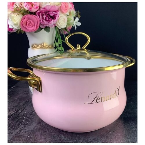 Кастрюля эмалированная. Lenardi. Коллекция Miguel. 5л. Розовый.