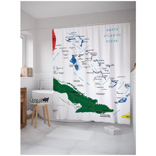 Штора занавеска) для ванной JoyArty Багамские острова из сатена, 180х200 см с крючками