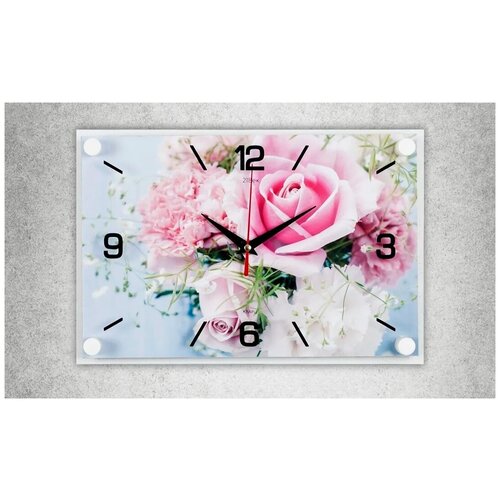 Часы настенные 21 Век Нежные розы 30.5x20.5 см прямоугольной формы для кухни, спальни, детской, кварцевый механизм с плавным ходом, арабские цифры, циферблат с рисунком, корпус ДВП, пластик, минеральное стекло, металл, работа от 1 батарейки тип АА, 20302