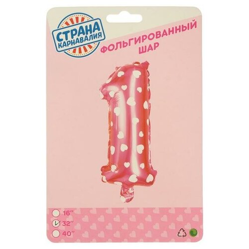 Шар фольгированный Страна Карнавалия 32 Цифра 1, сердца, индивидуальная упаковка, цвет розовый 2769707)