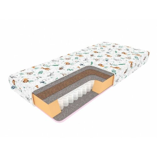 Звездочет это детский матрас на независимом пружинном блоке.В основе матраса представлен пружинный блок EVS500, где каждая пружина находится в закрытом мешочке и не имеет металлической связки с соседними пружинами. Данная конструкция позволяет равномерно распределить вес тела, не вовлекая в работу соседние пружины и гарантирует комфортный отдых. Отличительными особенностями такой конструкции являются: бесшумность в ходе эксплуатации, отсутствие эффекта гамака.Сторона со средней жесткостью представлена ортопедической пеной. Это самый популярный наполнитель, используемый в производстве матрасов. Данный материал положительно зарекомендовал себя сочетанием ценакачество. Устойчив к деформации и давлению, выдерживает большие нагрузки. Практичный износостойкий эластичный материал высокой плотности. Обладает гипоаллергенными свойствами.Более жесткая сторона представлена кокосовой койрой. Это натуральный материал, который придает спальному месту дополнительную жесткость. Благодаря своему составу, кокосовое волокно, более эластично и обладает повышенной износостойкостью, за счет чего матрас надолго сохраняет потребительские свойства.В качестве изоляционного слоя используется термовойлок. Это прочный нетканый материал, который предотвращает губительное воздействие пружинного блока на основные слои матрасаМатрас получил съмный чехол. В любой момент времени обивку можно удобно снять для стирки или химчистки. Чехол изготовлен из хлопковой бязи с детским рисунком.Состав матраса:Чехол ТермовойлокКокосовая койра 1 смТермовойлокНезависимый блок EVS 500ТермовойлокОртопедическая пена 1 смЧехол