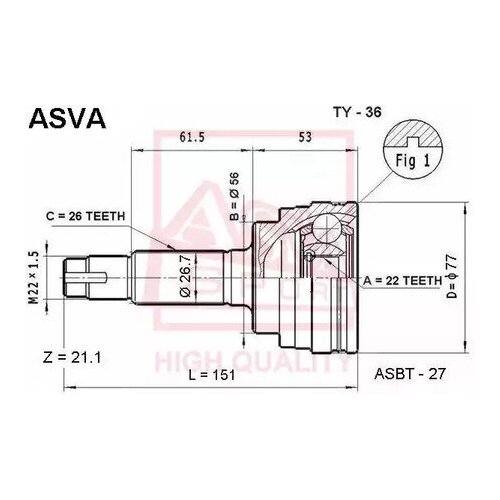 ШРУС наружный 22x56x26 ASVA TY36