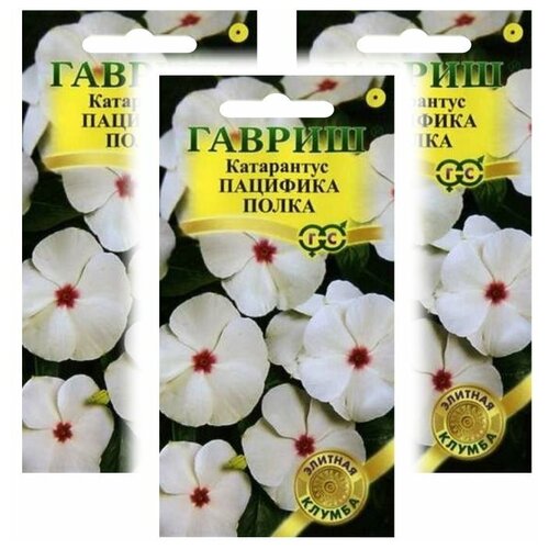 Комплект семян Катарантус Пацифика Полка серия Элитная клумба х 3 шт. Нарядное однолетнее растение. Для сортотипа Пацифика характерны ранние сроки цветения, крупноцветковость, компактная, сильноветвистая форма, не требующая формировки, высокая устойчивость к жаре и засухе. Растение высотой 2530 см, диаметром 1520 см, листья темнозеленые, цветки до 5 см, белые с красным глазком. Очень благодарное растение, обильно цветет до заморозков. Предпочитает солнечное место, полив, устойчив к жаре и засухе.