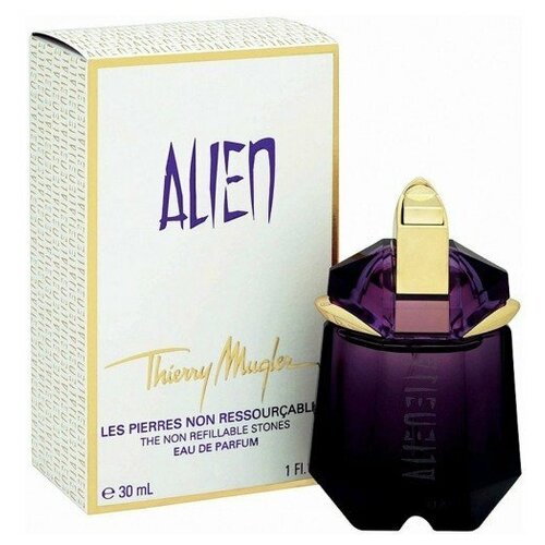 Год выпуска: 2005Производство: ФранцияСемейство: восточные древесныеВерхние ноты: ЖасминСредние ноты: Древесные нотыБазовые ноты: АмбраКогда на парфюмерном рынке засиял новый бриллиант торговой марки, он вызвал бум среди женщин. Духи соединяют в себе загадочные древесные ноты и соблазнительную восточную композицию. Такое сочетание делает парфюм Thierry Mugler Alien восхитительным. Он раскрывается полевыми и садовыми цветами, которые нежно подчеркивает сексуальная амбра.Женщина, выбирающая аромат Тьерри Мюглер Алиен, обаятельная и романтичная особа с загадочной улыбкой на лице. Она пленит незнакомца чувственным взглядом. Неординарный аромат соблазняет и манит. Цена духов в оригинале доступна каждой женщине.