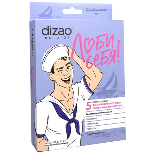 Dizao маска для лица Люби себя! Гиалурон и морские соли, 30 г