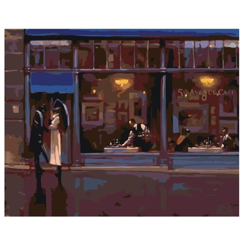 Картина по номерам, Живопись по номерам, 72 x 90, BL05, Он и она, влюблнные, зонт, дождь, здание, ресторан, улица, пейзаж, Брент Линч