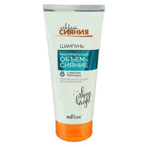 Шампунь для волос Секрет сияния 34;Максимальный объем и сияние34; с маслом морошки Белита 200 мл отличное средство для придания волосам головокружительного объема. Комплекс активных компонентов, входящий в состав шампуня, воздействует на волосы по нескольким направлениям: деликатно очищает волосы и кожу головысоздает невероятный объем уже после первого примененияпридает естественный блеск и сияние волосамМасло морошки с высоким содержанием витаминов, микроэлементов и незаменимых жирных кислот преображает волосы, придавая им необычайную красоту и сияние. Rice Tein укрепляет волосы, предотвращает их ломкость, возвращает эластичность, силу и естественный блеск. Rice Tein окутывает волосы невесомой вуалью и мгновенно приподнимает их от корней до самых кончиков, создавая максимальный объем по всей длине на длительный срок.