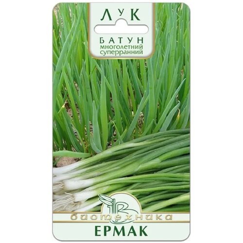 Специальная селекция лукабатуна, отличающаяся поздним стрелкованием, а также наличием укороченного отбеленного основания, обладающего деликатесным вкусом.Очень ранний, с длительным периодом пригодности для срезки зелени.Является одним из самых ранних луков, его зелень появляется, как только сходит снег, в этот период он с успехом заменяет зелень репчатого лука.Обладая очень коротким периодом покоя, идеально подходит для выгонки в теплице или на подоконнике в осеннеезимний период.У сорта Ермак листья цилиндрические, дудчатые, более крупные, чем у лука репчатого, темнозеленые со слабым восковым налетом. Вкус приятный, полуострый. При окучивании резаной соломой или опавшими листьями, формирует укороченную отбеленную ногу, улучшающую вкусовые качества растения.За сезон проводят 23 срезки. После срезки, желательно провести подкормку минеральным удобрением с преобладанием азота. На одном месте рекомендуется выращивать не дольше четырех лет, иначе значительно снижается урожай зелени.