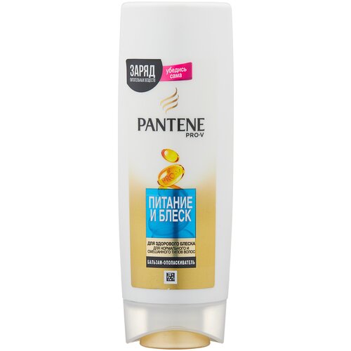 Бальзамополаскиватель PANTENE ProV Пантин ПроВи) Питание и Блеск предназначен для нормального и смешанного типов волос. Благодаря уникальному комплексу ProV он насыщает волосы активными питательными веществами, придавая им красивый здоровый вид от корней до кончиков. Бальзамополаскиватель восстанавливает естественный баланс влаги и возвращает волосам здоровый вид и природный блеск. Не содержит минеральных масел и красителей. Подходит для ежедневного ухода и для окрашенных волос. Для достижения максимального эффекта используйте в сочетании с шампунем для волос из коллекции Питание и Блеск. Легендарный бренд PANTENE ProV заботится о здоровье и красоте волос женщин по всему миру уже более 75 лет. Сегодня Pantene это богатый научный опыт ведущих экспертов и самые эффективные ингредиенты и питательные вещества, протестированные и одобренные Швейцарским Институтом Витаминов.