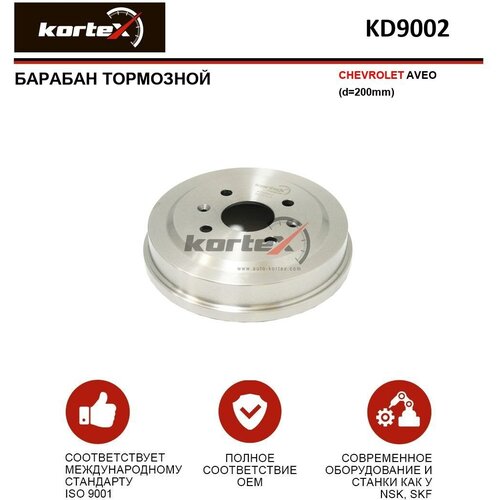 Тормозной барабан Kortex для Chevrolet Aveo d200mm) OEM 96470999, KD0182, KD9002