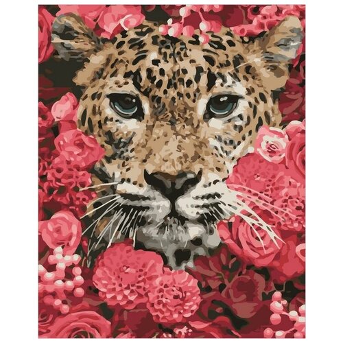 Картина по номерам Гепард в розовых цветах, 40x50 см, ВанГогВоМне