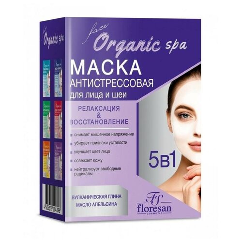 Маска для лица floresan антистрессовая ORGANIC SPA 15мл 10 штук в упаковкеФ310