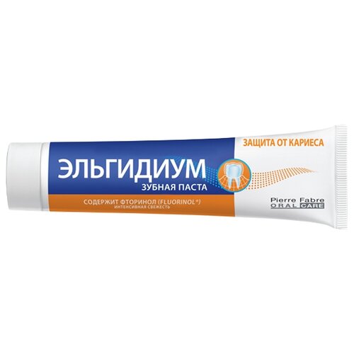 Эльгидиум Защита от кариеса зубная паста с содержанием фторинола для укрепления эмали и профилактики кариеса. Паста содержит запатентованное компанией Пьер Фабр вещество Fluorinol никаметанола гидрофторид, или фторинол), аминофторид второго поколения в концентрации 1350 ppm. Его отличие от обычного соединения фтора состоит в ускоренной фиксации ионов фтора в зубной эмали. Результаты лабораторного исследования показали, что за 1 минуту контакта фторинола с зубами на эмали фиксируется в 5 раз больше ионов фтора по сравнению с обычным минеральным фторидом. Таким образом Фторинол способствует эффективной реминерализации и укреплению зубной эмали. Силигликоль в составе пасты образует на поверхности зубов защитную пленку, которая удерживает фторинол на эмали. Преимущества пасты Эльгидиум Защита от кариеса:инновационная формула с доказанной эффективностью укрепляет эмаль, насыщает ее необходимыми минералами подходит для ежедневного применения приятный мятный вкус надолго освежает дыхание Паста не содержит лаурилсульфат натрия sodium lauryl sulfate, или SLS), поэтому не раздражает слизистую оболочку. Состав: Aqua, Hydrogenated Starch Hydrolysate, Hydrated Silica, Glycerin, Sodium Lauroyl Sarcosinate, Titanium Dioxide Cl 77891), Cellulose Gum, Flavor Aroma), Limonene, Menthol LMenthol), Nicotinyl Alcohol HF, PEG12, PEG12 Allyl Ether, PEG12 Dimethicone, Sodium Benzoate, Sodium Saccharin, Tetrasodium Edta.